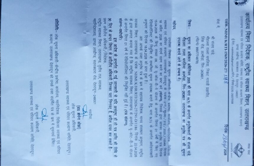 लंबे समय से उठाई जा रही मांग आखिरकार पूरी हो गई। सामाजिक कार्यकर्ता एवं आरटीआई एक्टिविस्ट संजय पांडे के प्रयासों से पंडित हर गोविंद पंत जिला चिकित्सालय, मॉल रोड के मुख्य द्वार पर लिफ्ट के पास आम जनता की सुविधा के लिए नया सूचना पट (सिटिजन चार्टर) स्थापित कर दिया गया है।