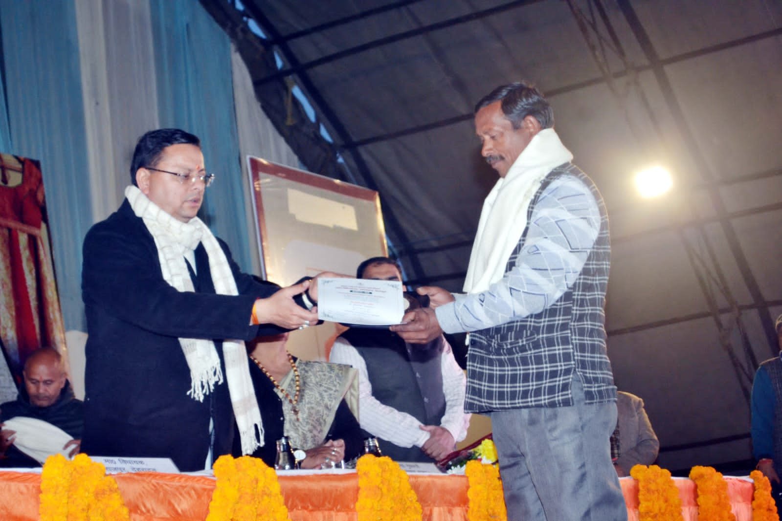 रेस कोर्स प्ले ग्राउण्ड, देहरादून में दिनांक 25 जनवरी 2024 से दिनांक 07 फरवरी 2024 तक आयोजित “स्टेट हैण्डलूम एक्सपो/राज्य हथकरघा प्रदर्शनी” के उद्घाटन समारोह में दिनांक..27 जनवरी 2024 को मा मुख्यमंत्री पुष्कर सिंह धामी जी द्वारा जनपद के सिद्धहस्त शिल्पियों को अंगवस्त्र, प्रशस्ति पत्र तथा योजना अन्तर्गत अनुमन्य धनराशि ₹ 1.0 लाख का चैक प्रदान करने हुए उनके काष्ठ कला क्षेत्र में किये गए कार्यों की सरहाना की गई।