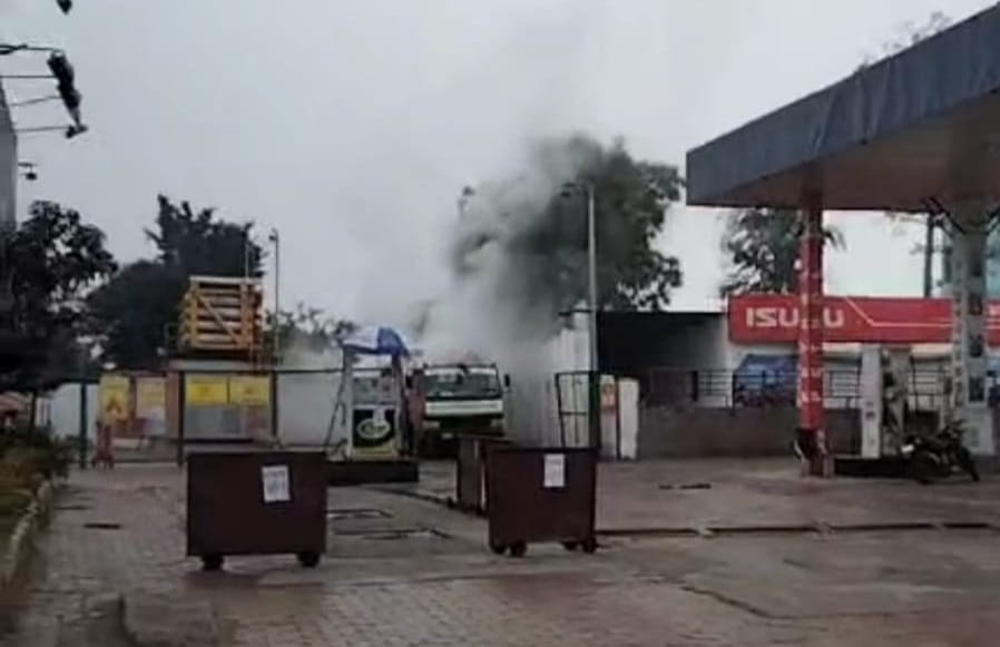 पेट्रोल पंप पर फटा CNG पाइप, रही अफरातफरी।