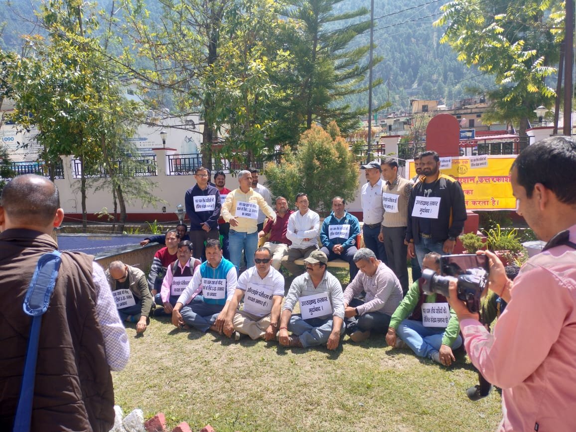 होटल एसोसिएशन उत्तरकाशी में DM कार्यालय में धरना प्रदर्शन किया।