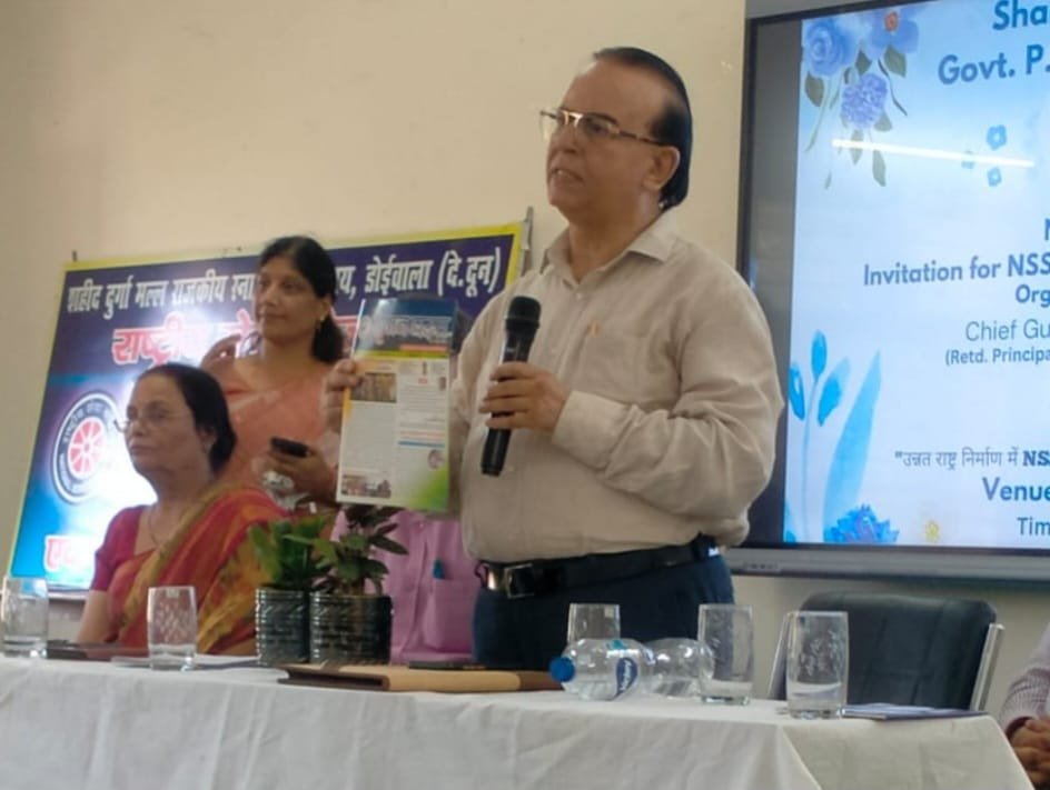 डोईवाला (देहरादून)। शहीद दुर्गा मल्ल राजकीय स्नातकोत्तर महाविद्यालय में राष्ट्रीय सेवा योजना का 56 वां स्थापना दिवस अत्यंत हर्षोल्लास के साथ मनाया गया। इस मौके पर स्वयंसेवी छात्र-छात्राओं ने सांस्कृतिक प्रस्तुतियों के माध्यम से राष्ट्रीय एकता का संदेश दिया। बतौर मुख्य वक्ता पूर्व जिला समन्वयक प्रो.के.एल.तलवाड़ ने कहा कि राष्ट्रीय सेवा योजना की गतिविधियों में प्रतिभाग करने से विद्यार्थियों के व्यक्तित्व का सर्वांगीण विकास होता है। वह समाज व राष्ट्र सेवा से जुड़कर एक जिम्मेदार नागरिक बनते हैं। प्रो.तलवाड़ ने स्वरचित पुस्तक भेंट करते हुए बताया कि एनएसएस के नियमित व विशेष शिविरों में प्रतिभाग और “बी” व “सी” प्रमाण पत्र परीक्षा में सम्मिलित होकर उनकी करियर की राह भी आसान हो जाती है।