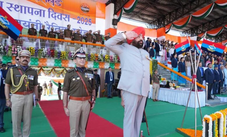 राज्य स्थापना के रजत जयंती समारोह में राज्यपाल ने रैतिक परेड की सलामी ली