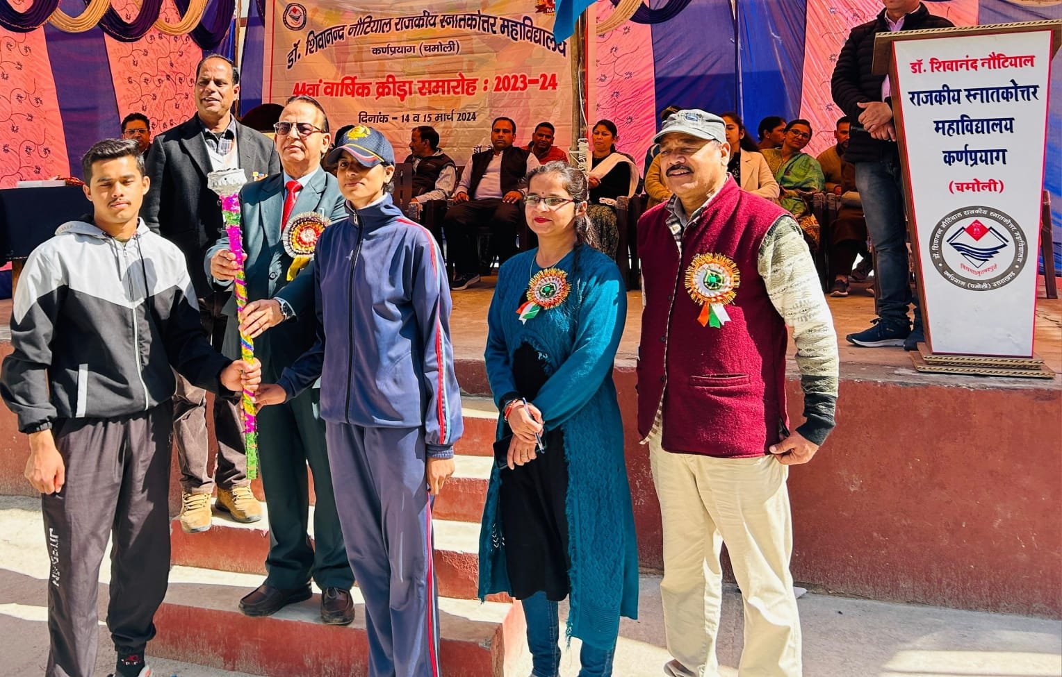 कर्णप्रयाग, डा.शिवानंद नौटियाल राजकीय स्नातकोत्तर महाविद्यालय कर्णप्रयाग के दो दिवसीय 44 वें वार्षिक क्रीड़ा समारोह का शुभारंभ अत्यंत हर्षोल्लास के साथ हुआ। कार्यक्रम का शुभारंभ करते हुए प्राचार्य प्रो.के.एल.तलवाड़ ने कहा कि क्रीड़ा में जीत से अधिक महत्व प्रतिभाग का होता है। खेल स्वस्थ शरीर के लिए आवश्यक है और स्वस्थ शरीर में ही स्वस्थ मस्तिष्क निवास करता है। क्रीड़ा प्रभारी डाॅ.वेणीराम अन्थवाल ने दो दिवसीय वार्षिक क्रीड़ा समारोह की विस्तृत रूपरेखा प्रस्तुत कर खेल नियमों की जानकारी दी। कार्यक्रम का संचालन करते हुए समारोहक डा.आर.सी.भट्ट ने चैंपियनशिप के निर्धारण के विषय में बताया।