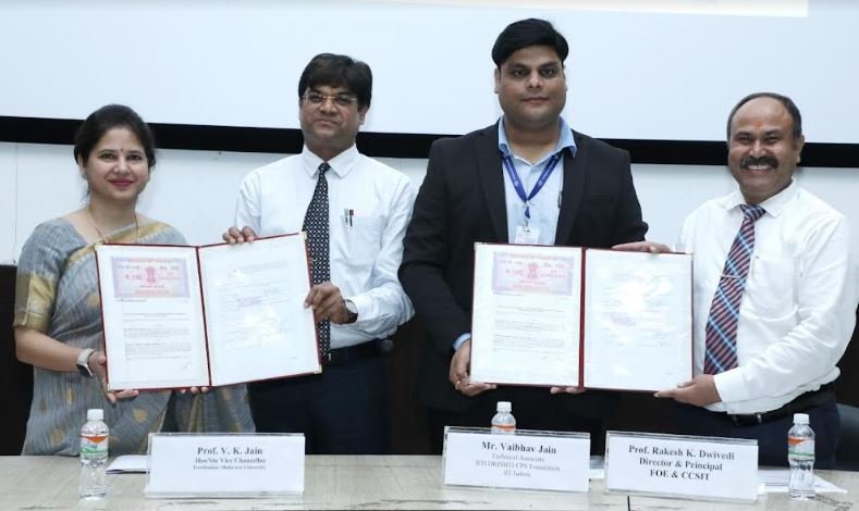 तीर्थंकर महावीर यूनिवर्सिटी, मुरादाबाद के कॉलेज ऑफ कम्प्यूटिंग साइन्सेज़ एंड इन्फॉर्मेशन टेक्नोलॉज़ी-सीसीएसआईटी और आईआईटी, इंदौर के दृष्टि सीपीएस फाउंडेशन के बीच एमओयू साइन हुआ। इस मौके पर टीएमयू के वाइस चांसलर प्रो. वीके जैन, डीन एकडेमिक्स प्रो. मंजुला जैन, एफओई एंड सीसीएसआईटी के निदेशक प्रो. राकेश कुमार द्विवेदी, आईआईटी, इंदौर के दृष्टि सीपीएस फाउंडेशन के प्रौद्योगिकी प्रमुख डॉ. धीरज राणे, वरिष्ठ एडब्ल्यूएस प्रशिक्षक श्री अक्षय केएस, फुल स्टैक डवलपर श्री वैभव जाधव, तकनीकी सहयोगी श्री वैभव जैन के संग-संग प्रो. अशेन्द्र कुमार सक्सेना, डॉ. शंभू भारद्वाज, डॉ. रूपल गुप्ता, श्री हरजिंदर सिंह आदि की गरिमामयी मौजूदगी रही।