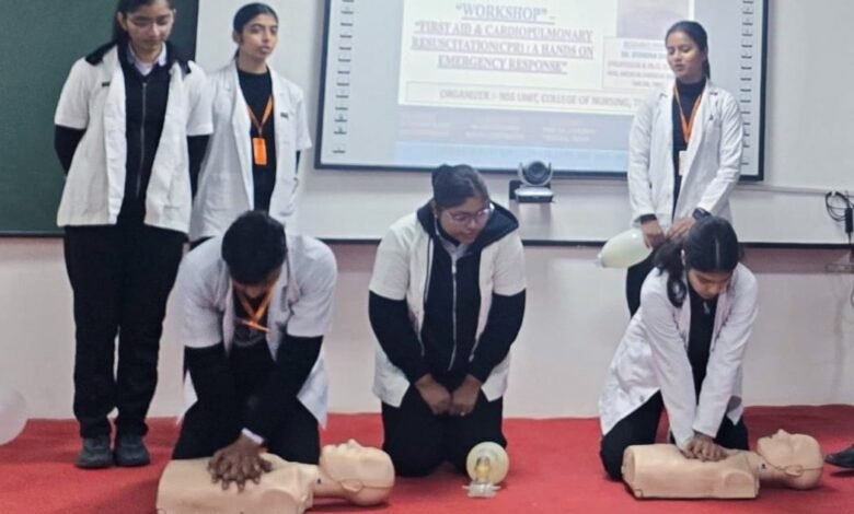 तीर्थंकर महावीर यूनिवर्सिटी के कॉलेज ऑफ नर्सिंग के मेडिकल सर्जिकल नर्सिंग विभाग की ओर से सीपीआर ए हैंड्स-ऑन इमरजेंसी रिस्पांस पर वर्कशॉप में बताए आपातकाल के दौरान प्राथमिक चिकित्सा के महत्व और तरीके