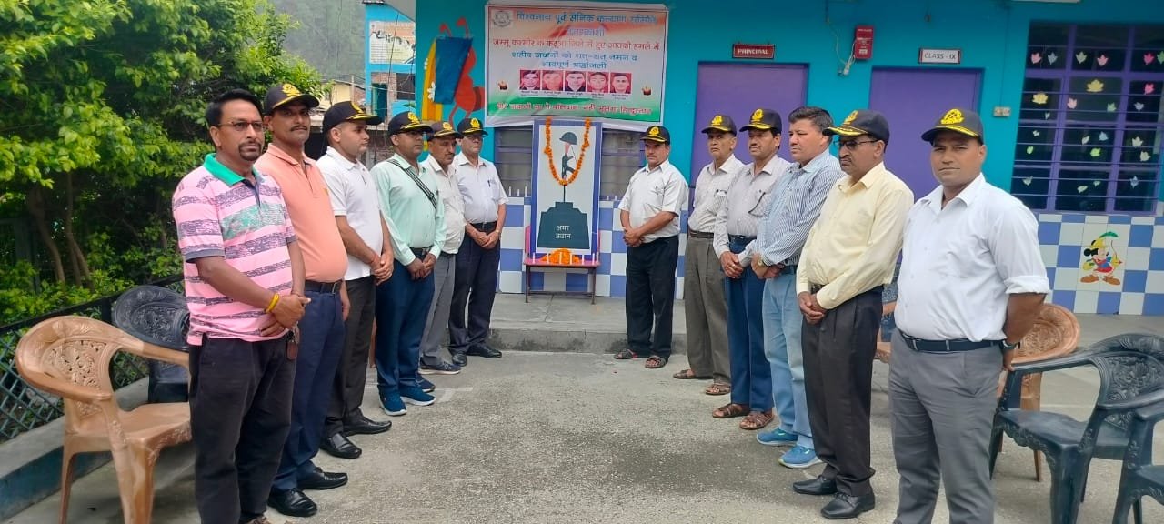 दिनांक 13.07.2024 को उत्तरकाशी जिले के सभी पूर्व सैनिकों द्वारा कठुआ हमले में शहीद हुए वीर जवानों के लिए श्रद्धांजलि सभा का आयोजन किया गया। जिसमें सभी पूर्व सैनिकों ने शहीद जवानों के लिए चित्रों पर फूलमाला और कैणिडल जलाकर श्रद्धांजलि अर्पित की गई और भगवान से प्रार्थना की गयी कि पुण्य आत्माओं को शांति प्रदान करे और उनके परिवार को इस असहाय दुःख को सहन करने की शक्ति प्रदान करे